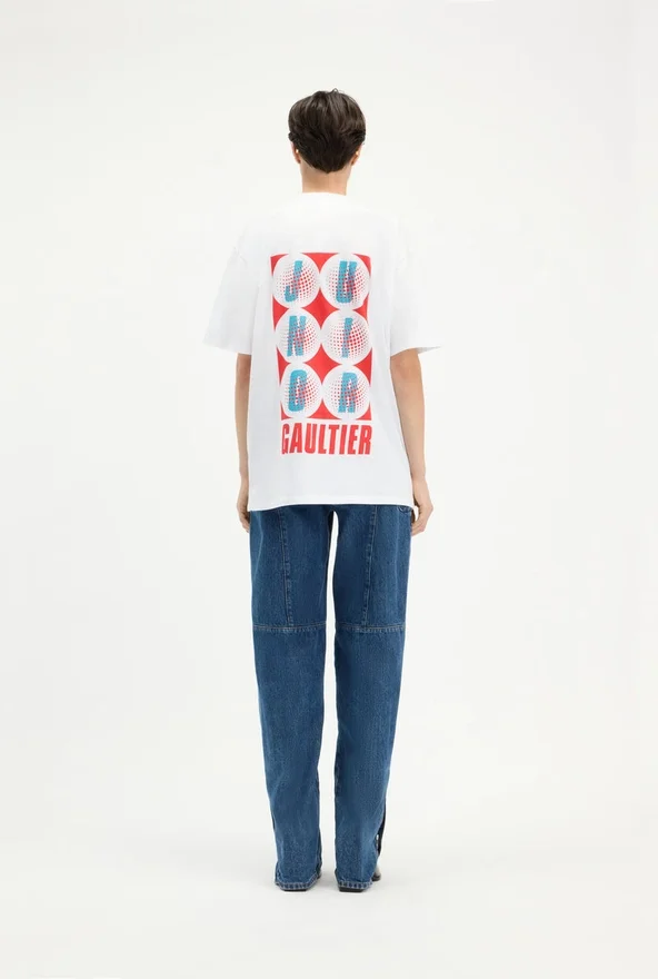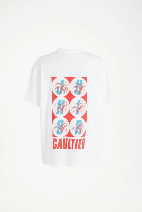 White Cotton T-Shirt with “Junior Gaultier” Print in Back