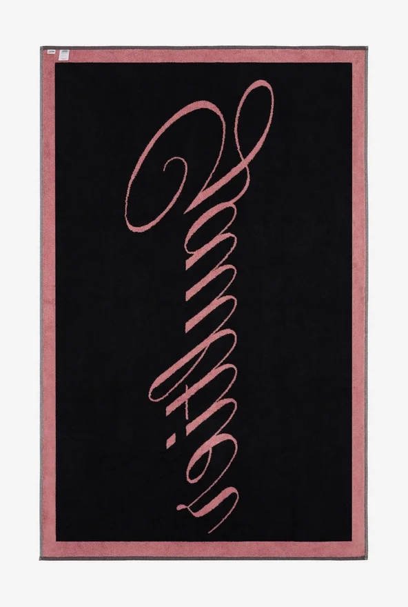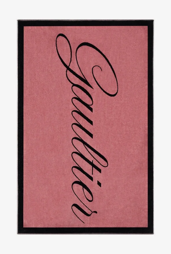 Pink Cotton Jacquard Beach Towel with Gaultier Logo.