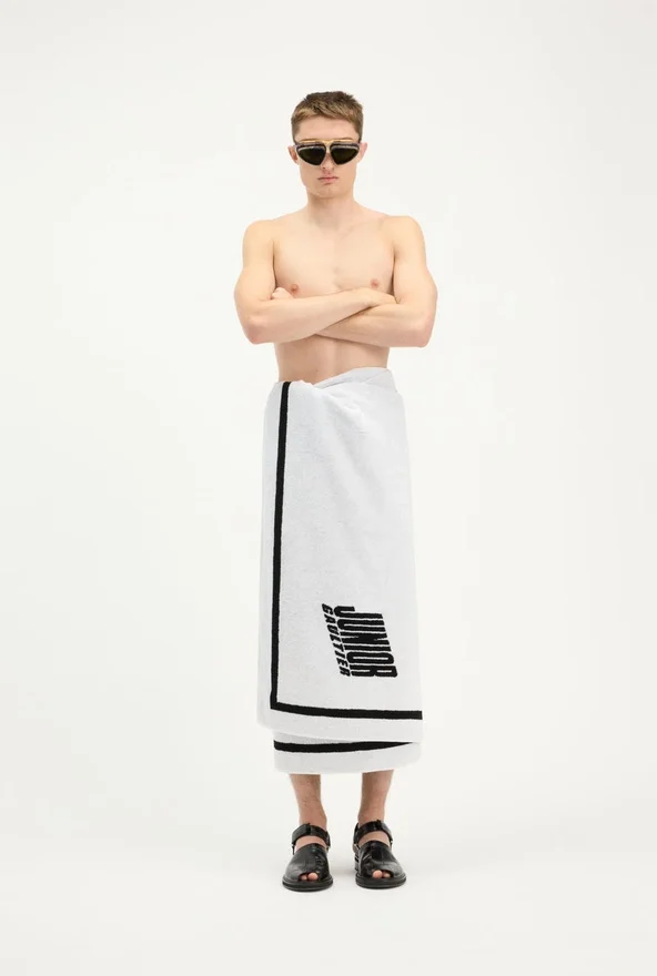 Black-And-White Cotton Beach Towel with “Kamasutra” Detail.