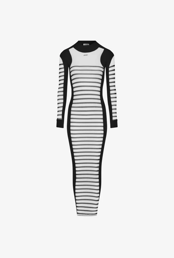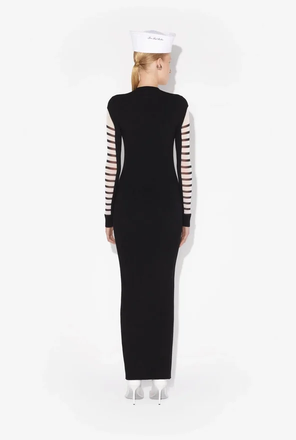 Long Black Knit Dress with Black and White Mariniare Tulle Appliqua.
