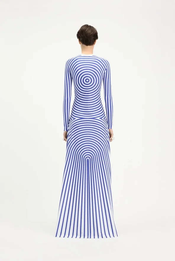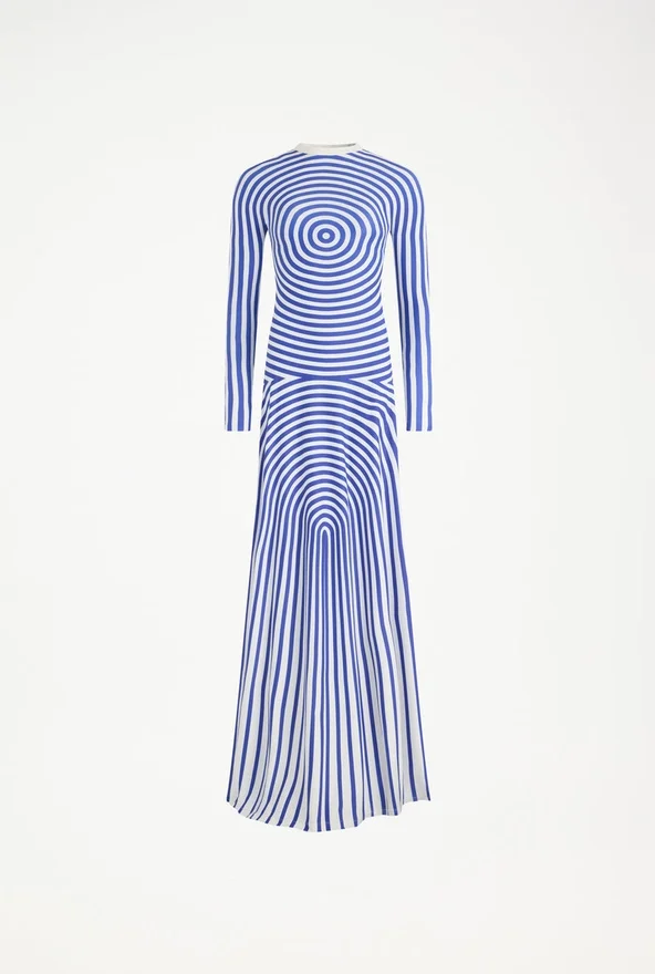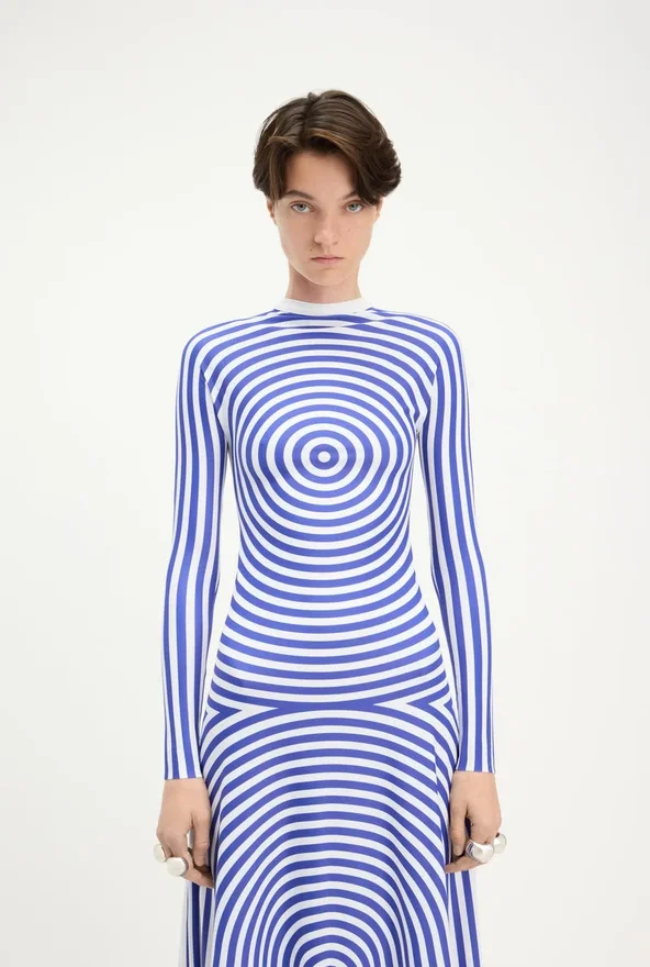 Discover the Long Blue Target Dress Jean Paul Gaultier.