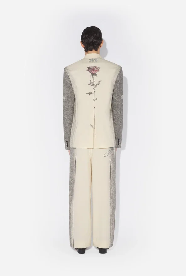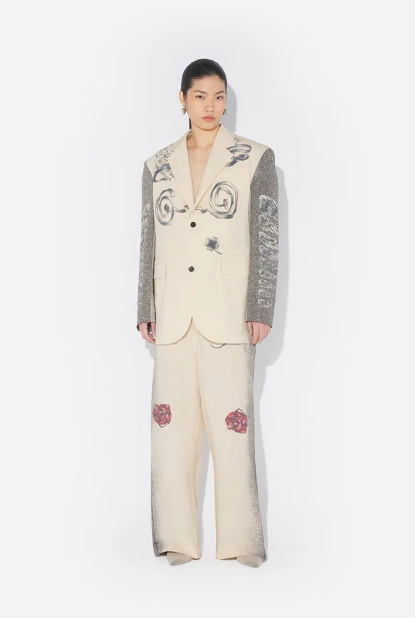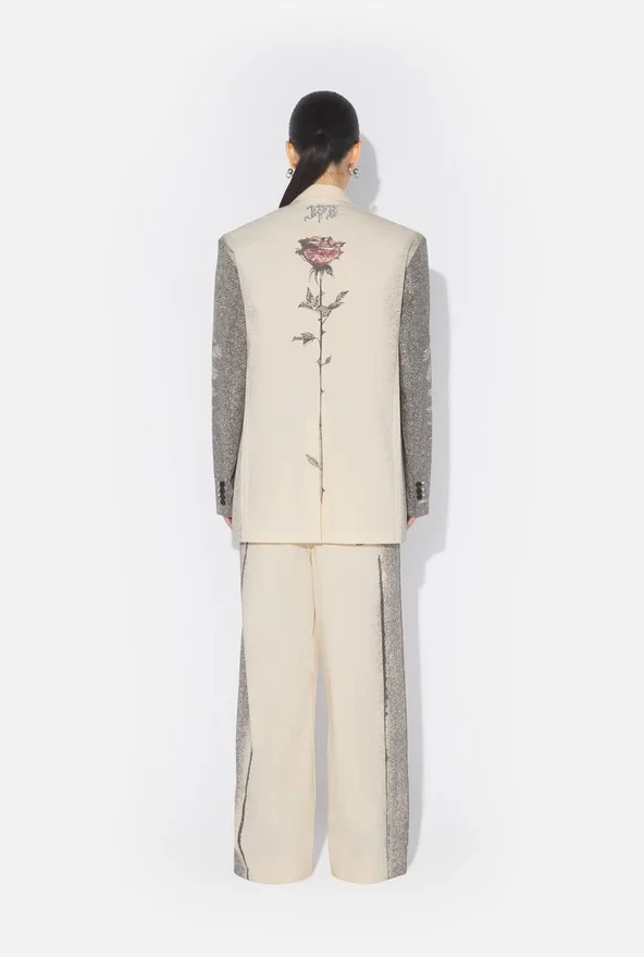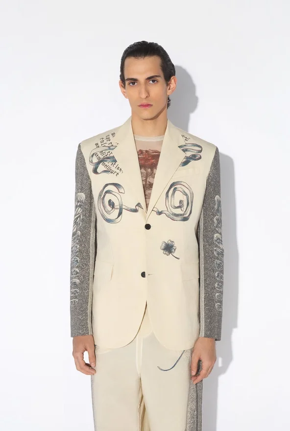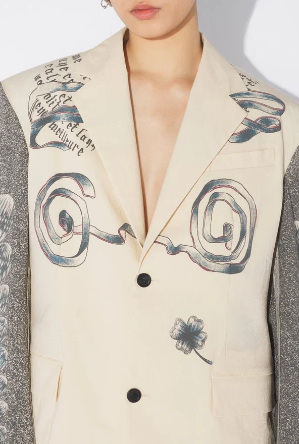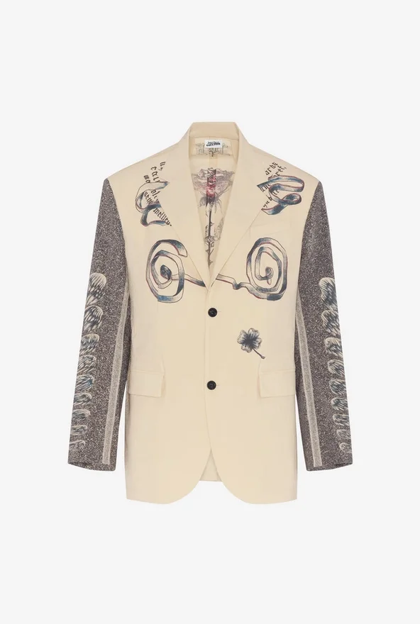 Ecru Cotton Suit Jacket with “Tattoo” Print.