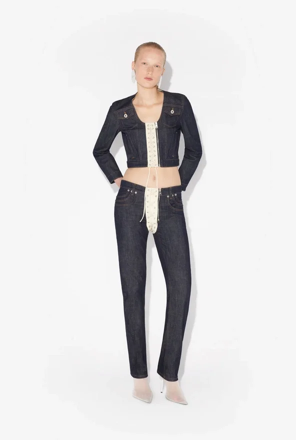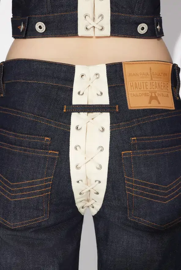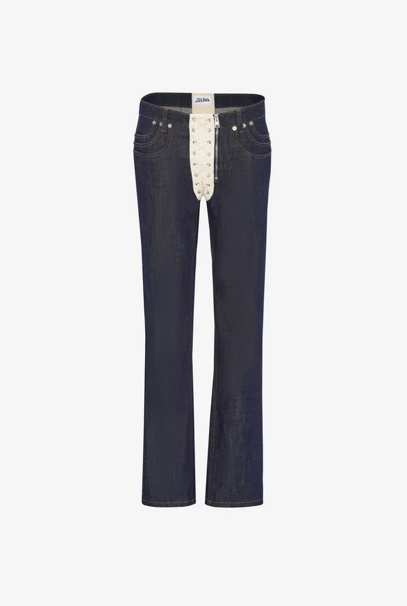 Discover the Contrasting Lace-Up Denim Jeans Jean Paul Gaultier.