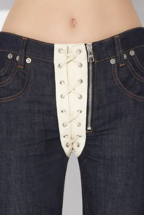 The Contrasting Lace-Up Denim Jeans