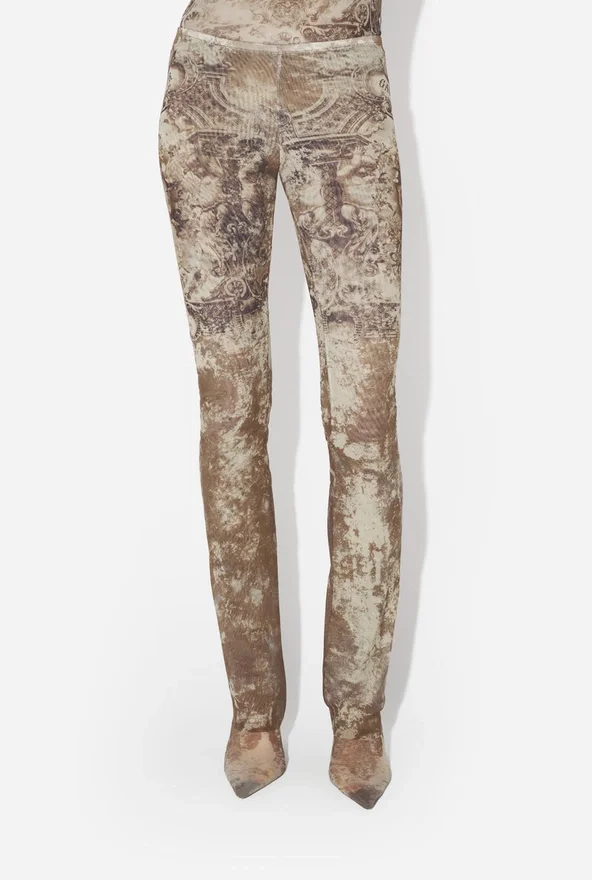 Beige Tulle Pants with “Madaillon” Print.