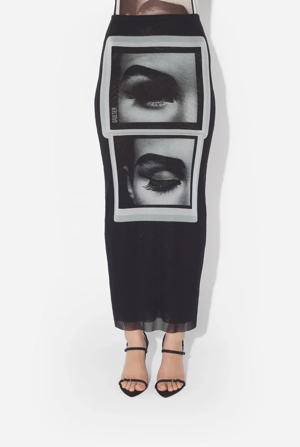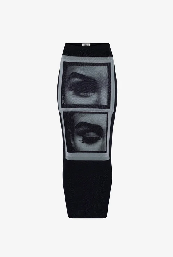 Discover the Black Eyes and Lips Skirt Jean Paul Gaultier.