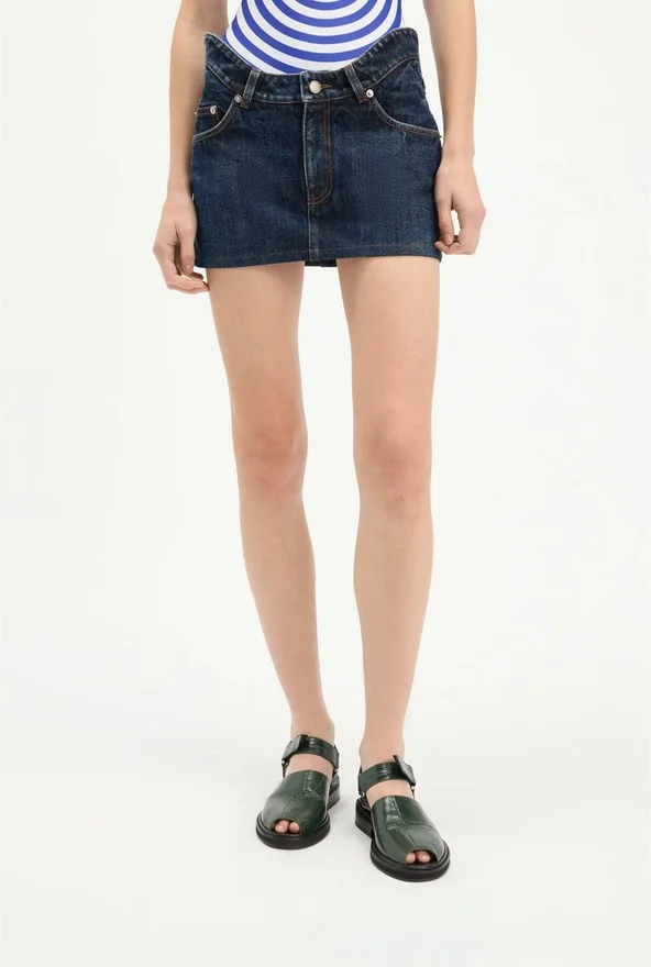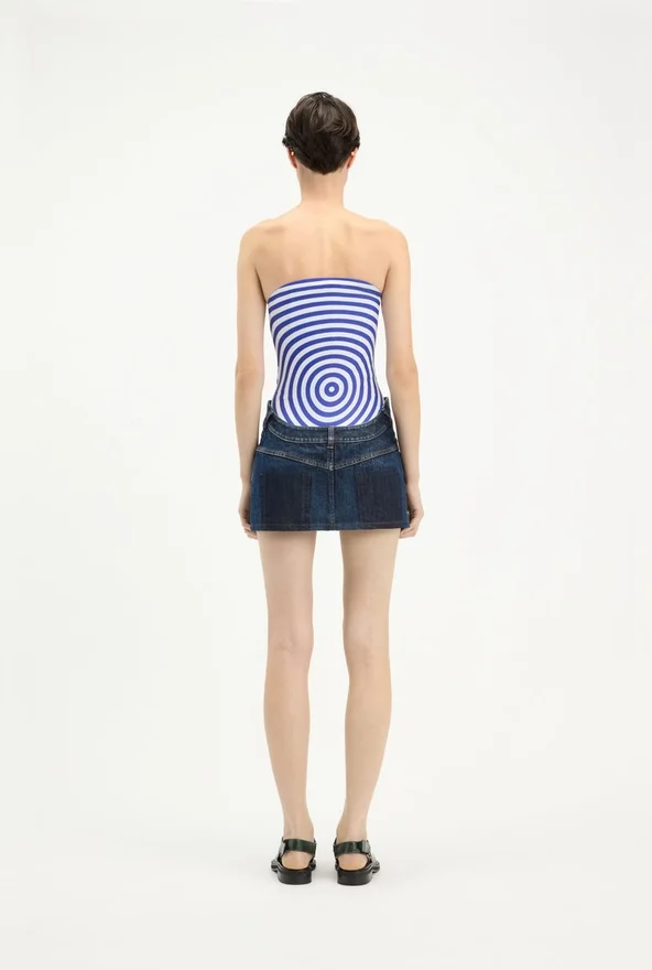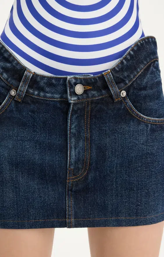 Discover the Curved Denim Mini Skirt Jean Paul Gaultier.