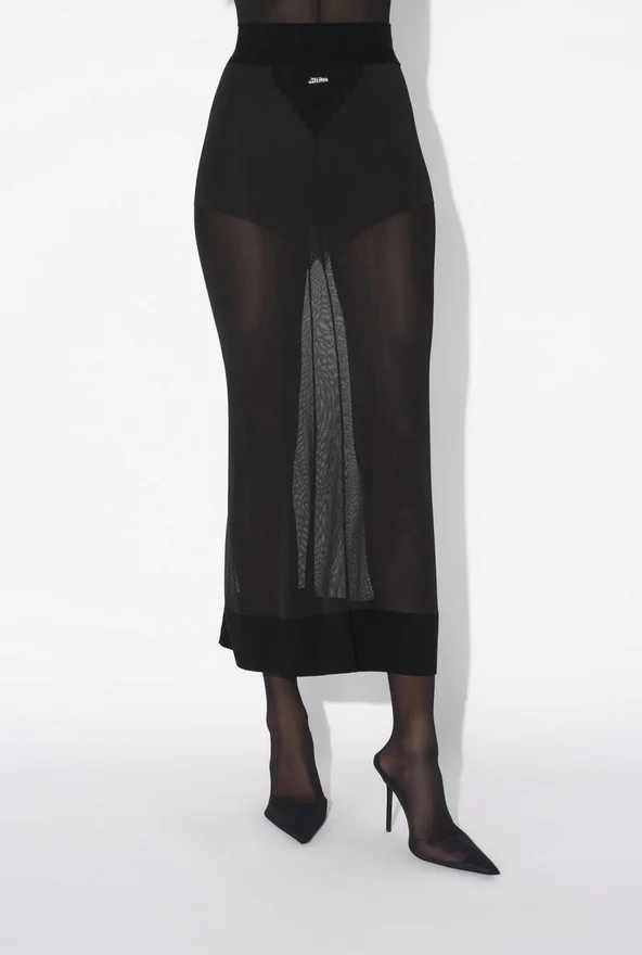 Black Knit Skirt with Jean Paul Gaultier Logo Detail at the Waist.