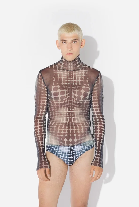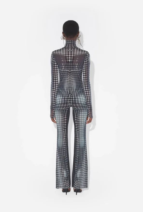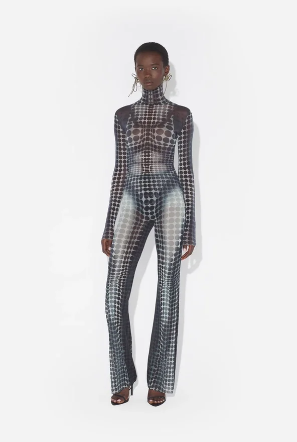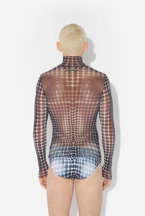 Discover the Black & White Dots Print Mesh Top Jean Paul Gaultier.