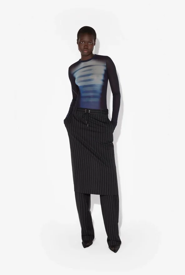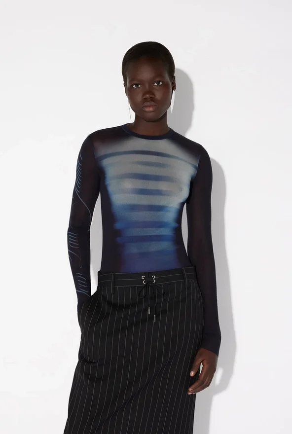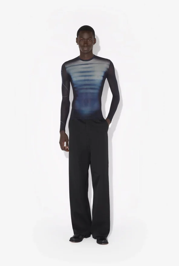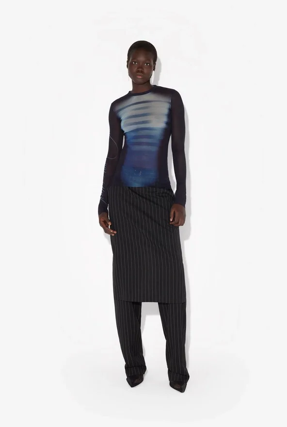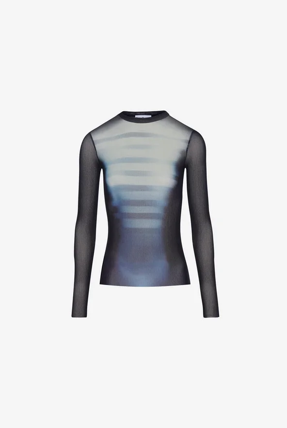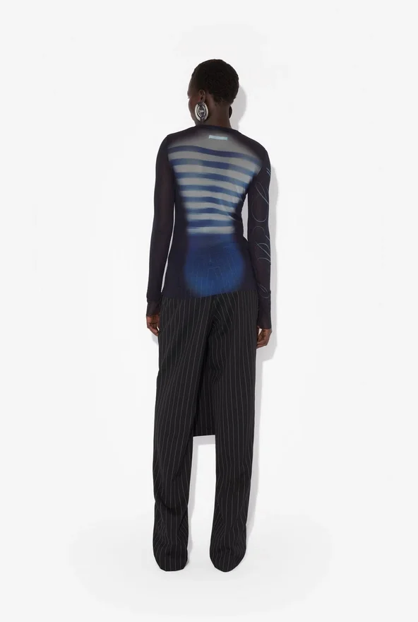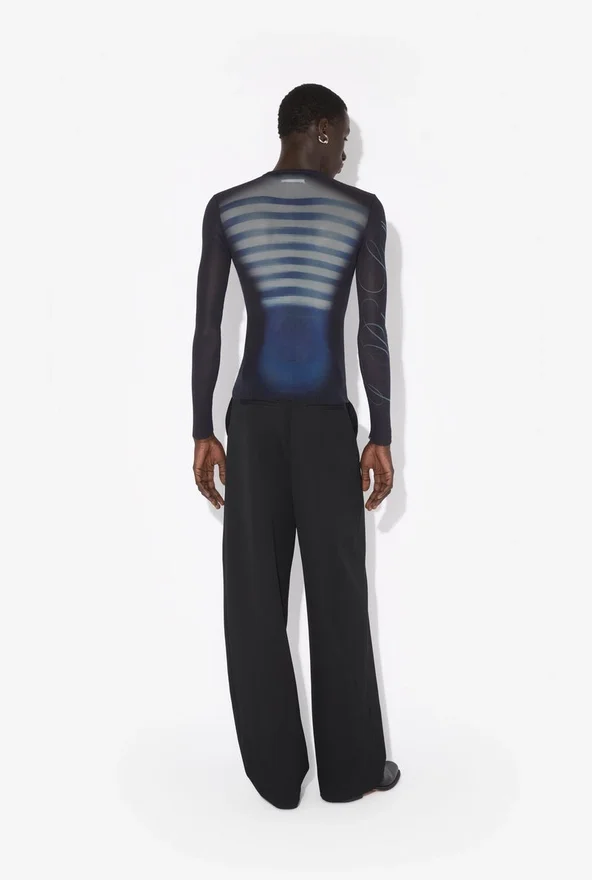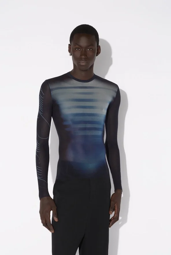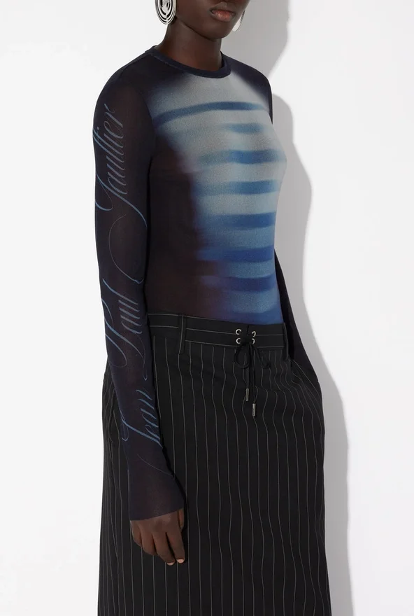 Long-Sleeved Blue Tulle Top with “Le Male” Print.