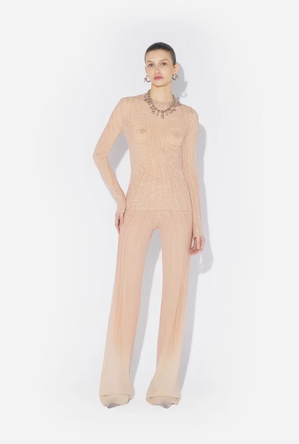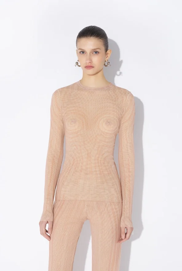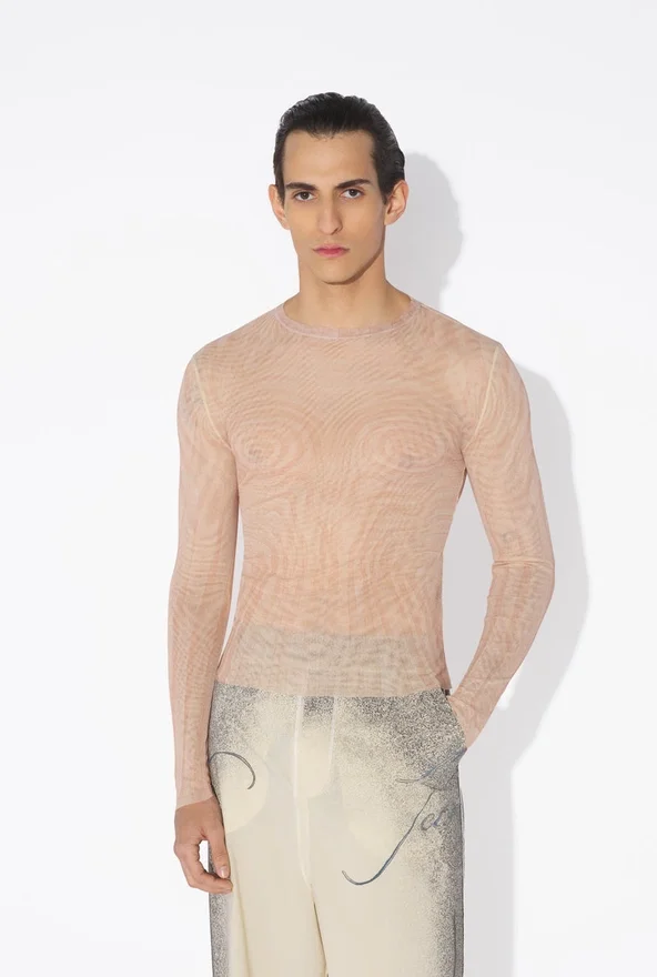 Long-Sleeved Pink Tulle Top with “Spiral” Print.