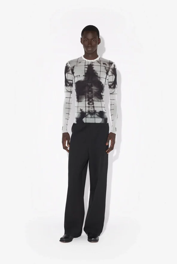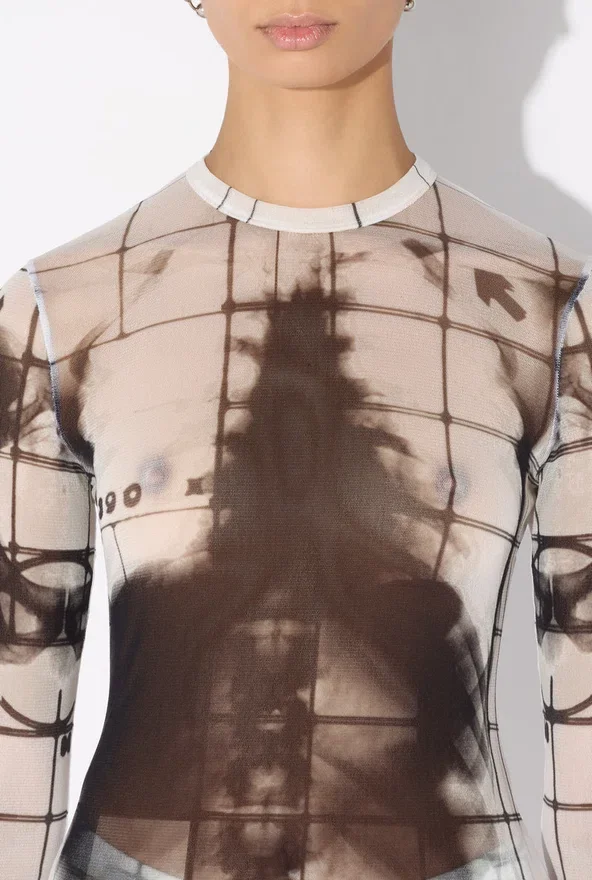 Long-Sleeved White Tulle Top with “Squeletor” Print.